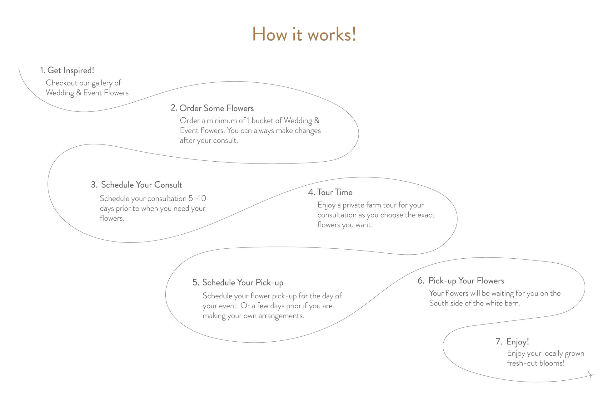 - Schedule your private farm tour for 1 to 2 weeks before you need your flowers